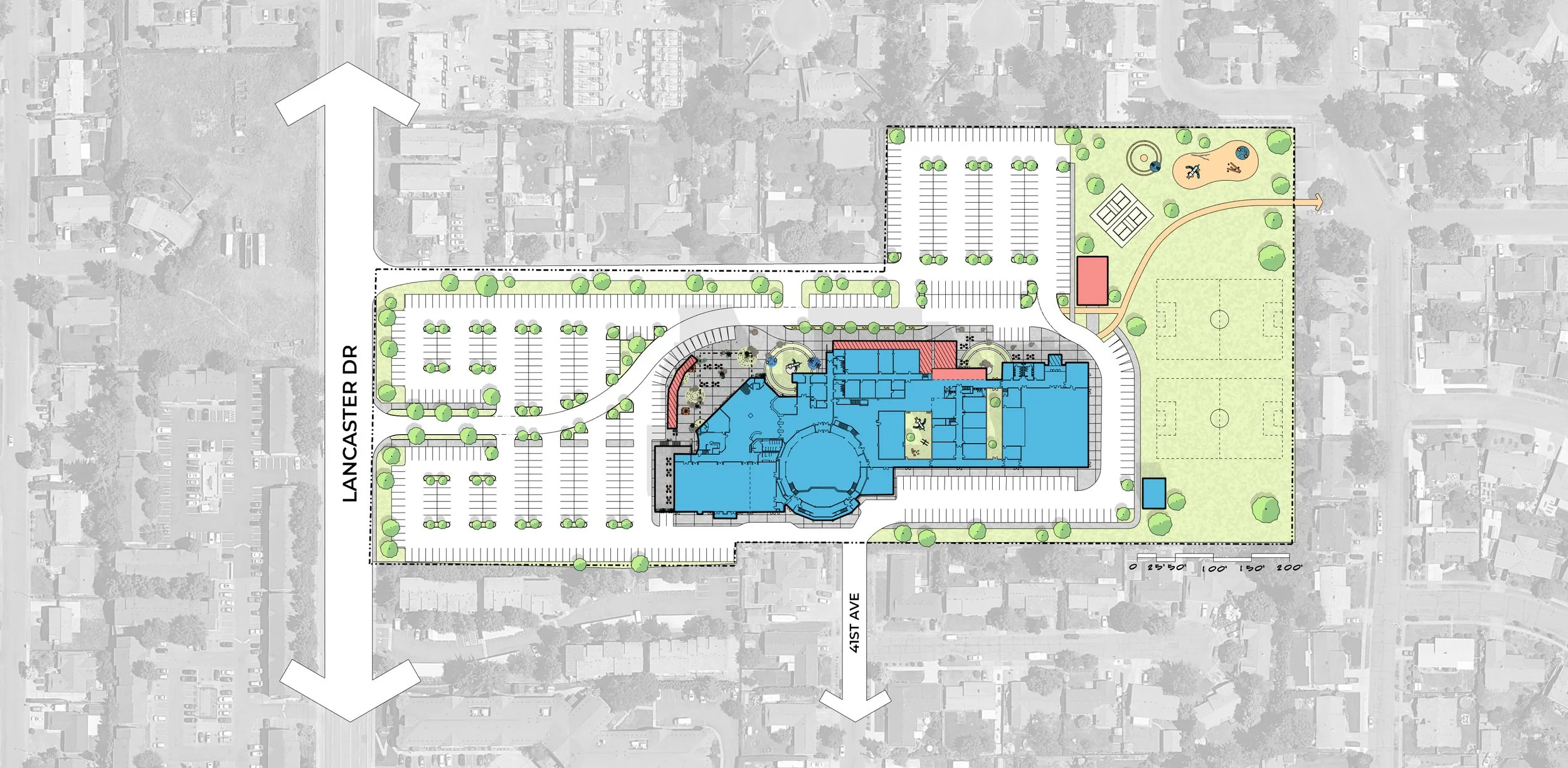 A big part of our work at Visioneering centered around masterplanning; reimagining and optimizing spaces to improve flow, function, and visual appeal. This often meant redesigning and expanding auditorium spaces with a focus on better layouts, while also planning new outdoor areas like landscapes, porches, and playgrounds. We made sure everything aligned with codes and capacity needs, all while supporting our clients’ goals for growth and flexibility. Beyond the planning itself, we put a lot of care into how we presented our ideas, creating visually compelling masterplans that not only communicated the vision clearly but also became practical tools our clients could use and reference moving forward.
